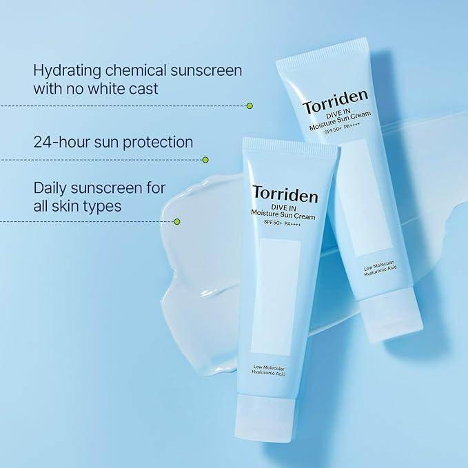 Torriden Watery Moisture Sun Cream is a lightweight, hydrating sunscreen that provides broad-spectrum SPF 50+ PA++++ protection against harmful UVA and UVB rays. This sun cream is formulated with moisturizing ingredients to keep the skin hydrated and comfortable throughout the day. Its watery, non-greasy texture absorbs quickly into the skin, leaving a smooth, dewy finish without any white cast.